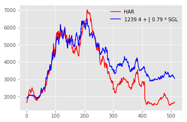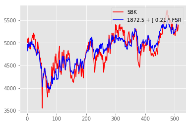 Correlation graph between SBK and FSR: The first half of the graph shows the period over which the correlation model was trained, and consequently fits really well. The second half is the ‘testing’ period, which shows how well the correlation continues into the future.