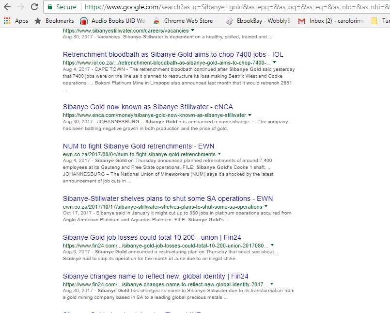 Google search for Sibanye Gold, limited to the last year (and this is the one we shorted!). Harmony Gold’s looks pretty bad too, with illegal mining, strikes, deaths at the mine and managers being murdered.