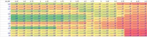 - Excel and VBA: I discussed using Excel and VBA for my backtesting with a family member who is an algorythmic trading programmer, and was nearly laughed out of the room. (Thanks Steve!) However, there are a few things which Excel has to recommend for itself. I feel that the familiarity of the environment helps you get started quickly, although you will very likely need VBA, so this may be moot if you’re not familiar with it. Not that you can’t do the same with Python, but I also liked creating functions which put out the result of my simulations, and then calling them from tables which laid out the profit with different combinations of input parameters to create a heat map with conditional formatting (which you can also do in Python, now that I think about it).